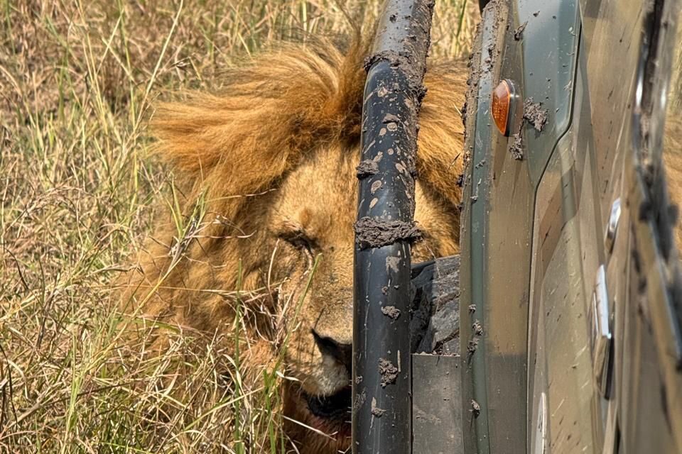 And then it happened. A lion walked right up and sat still — just inches in front of our jeep. No one moved. No one breathed. Nature wasn’t on display — we were.